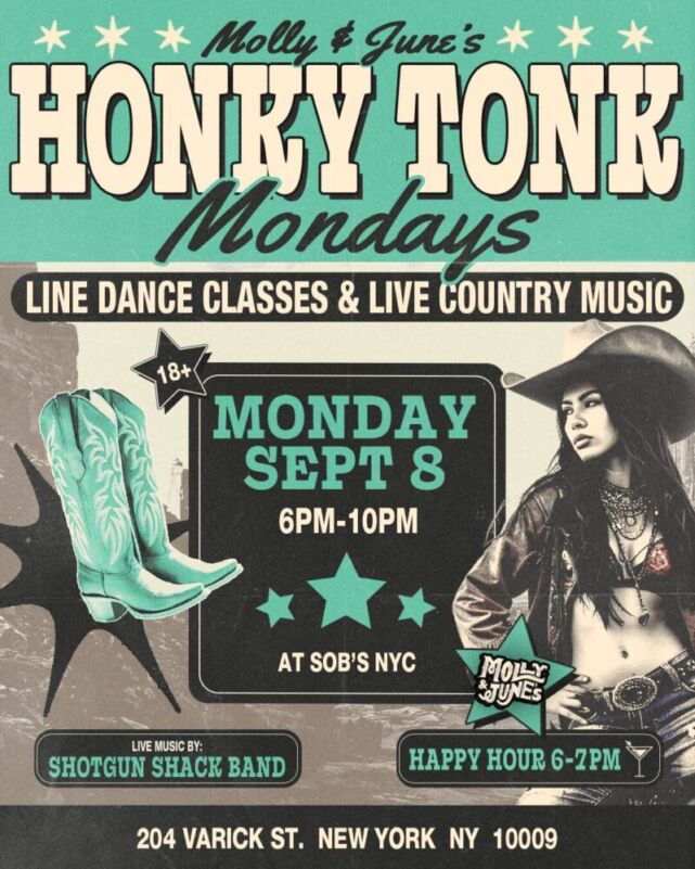 Join us for our brand-new Line Dancing Mondays series! Every Monday in September, Molly & June’s is taking over SOB’s with new line dances to learn each week.