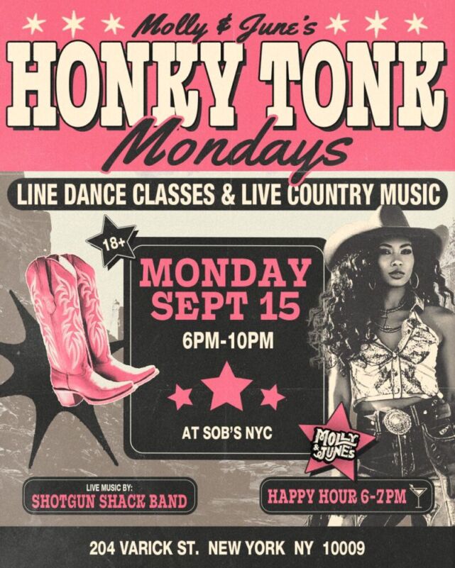 Join us for our brand-new Line Dancing Mondays series! Every Monday in September, Molly & June’s is taking over SOB’s with new line dances to learn each week.