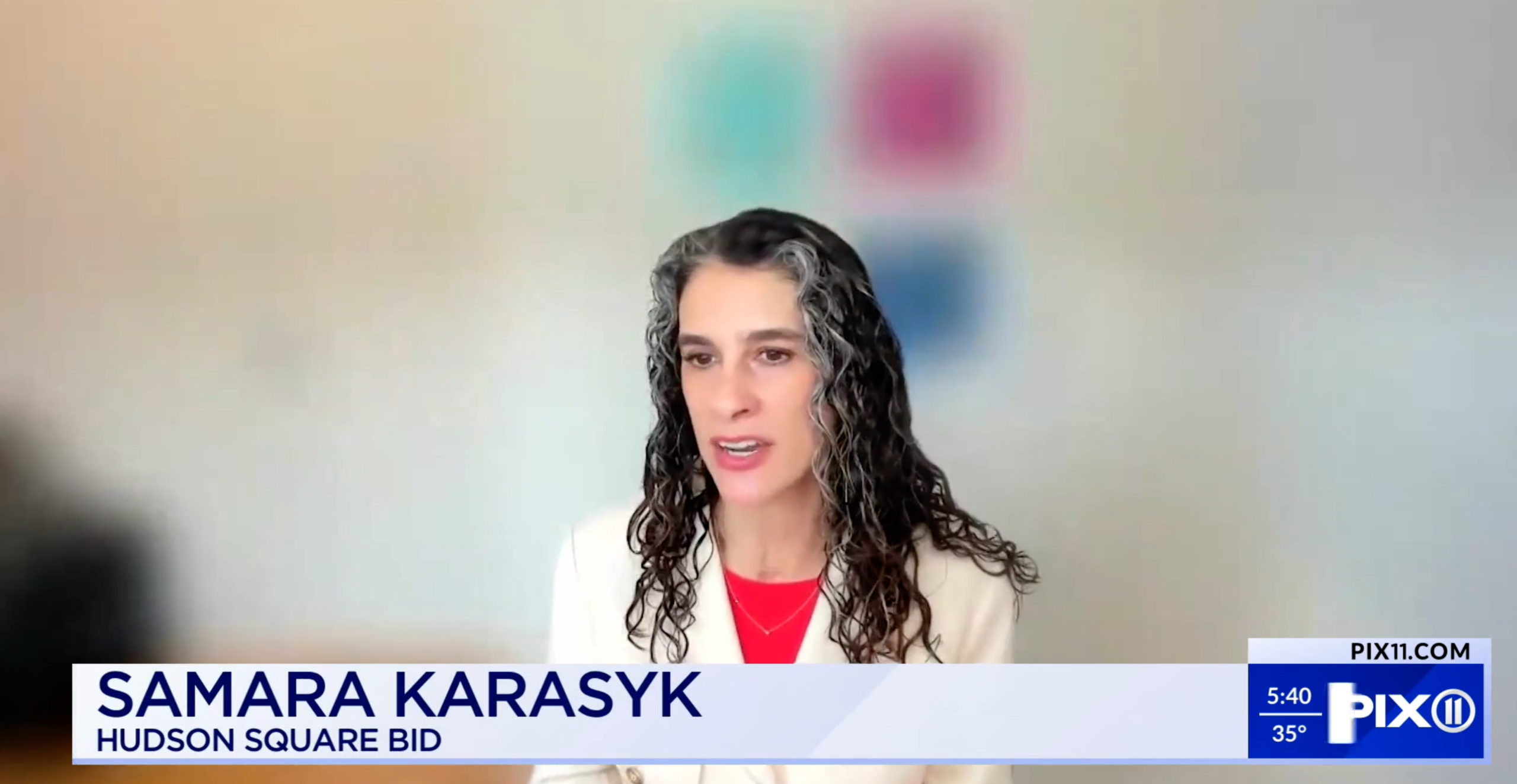 Hudson Square BID President & CEO Samara Karasyk spoke with CBS and PIX11 about how these changes are helping shape a calmer, more welcoming streetscape. One where people come first.